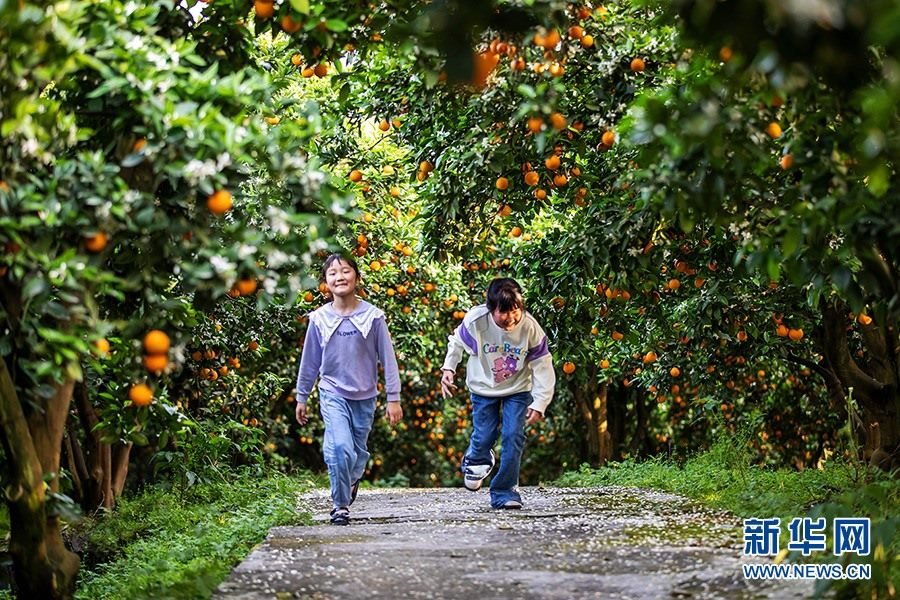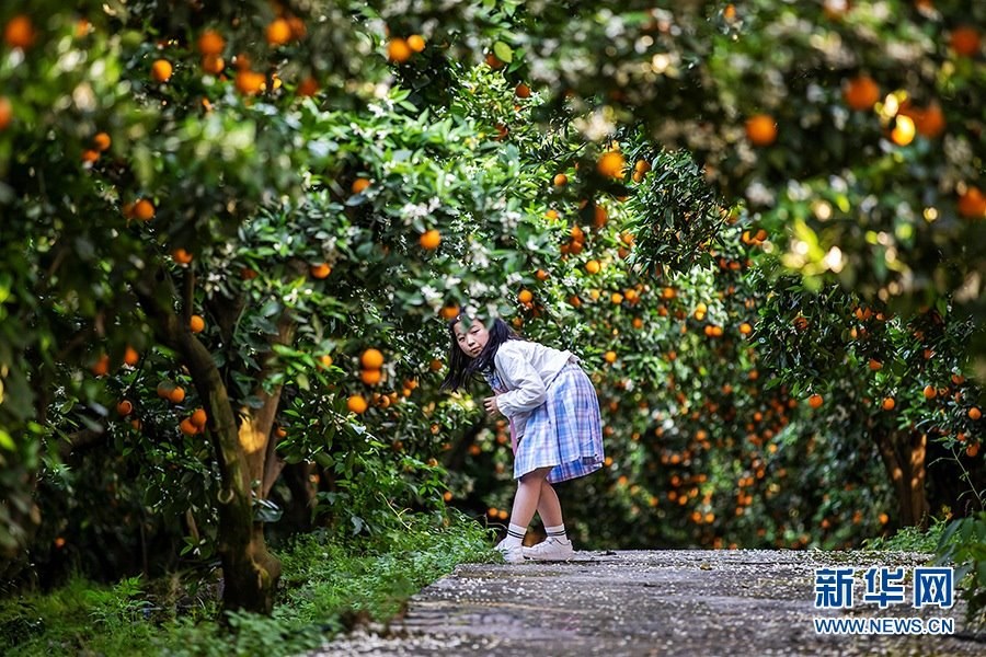 每到橘花燦爛時,綠浪掩映金色橙果,微風(fēng)輕送撲鼻花香,吸引了不少游客前來觀賞,果子也實(shí)現(xiàn)就地銷售,柑橘成為農(nóng)民增收的“搖錢樹”。新華網(wǎng)發(fā)(余鴻 攝)