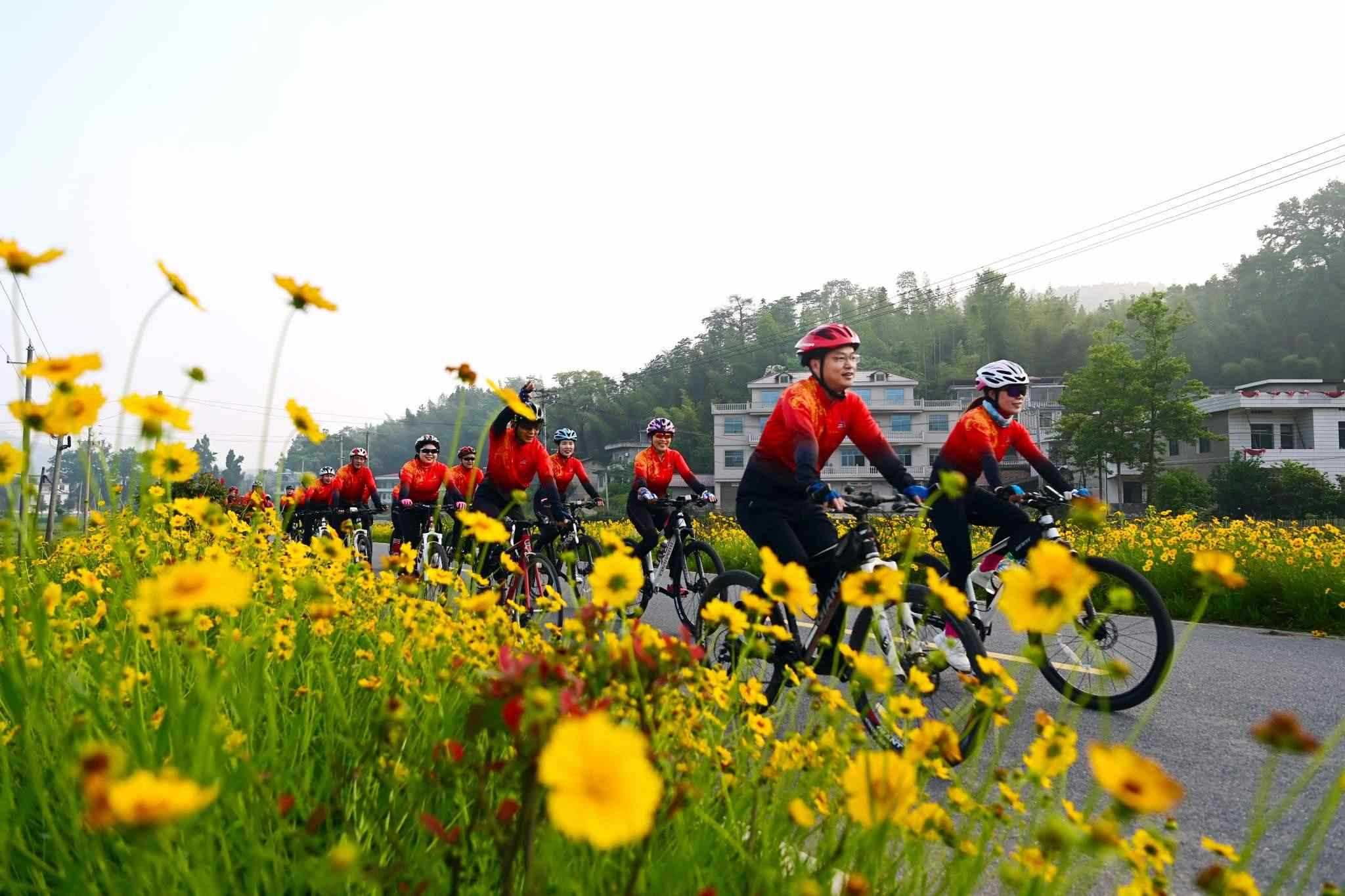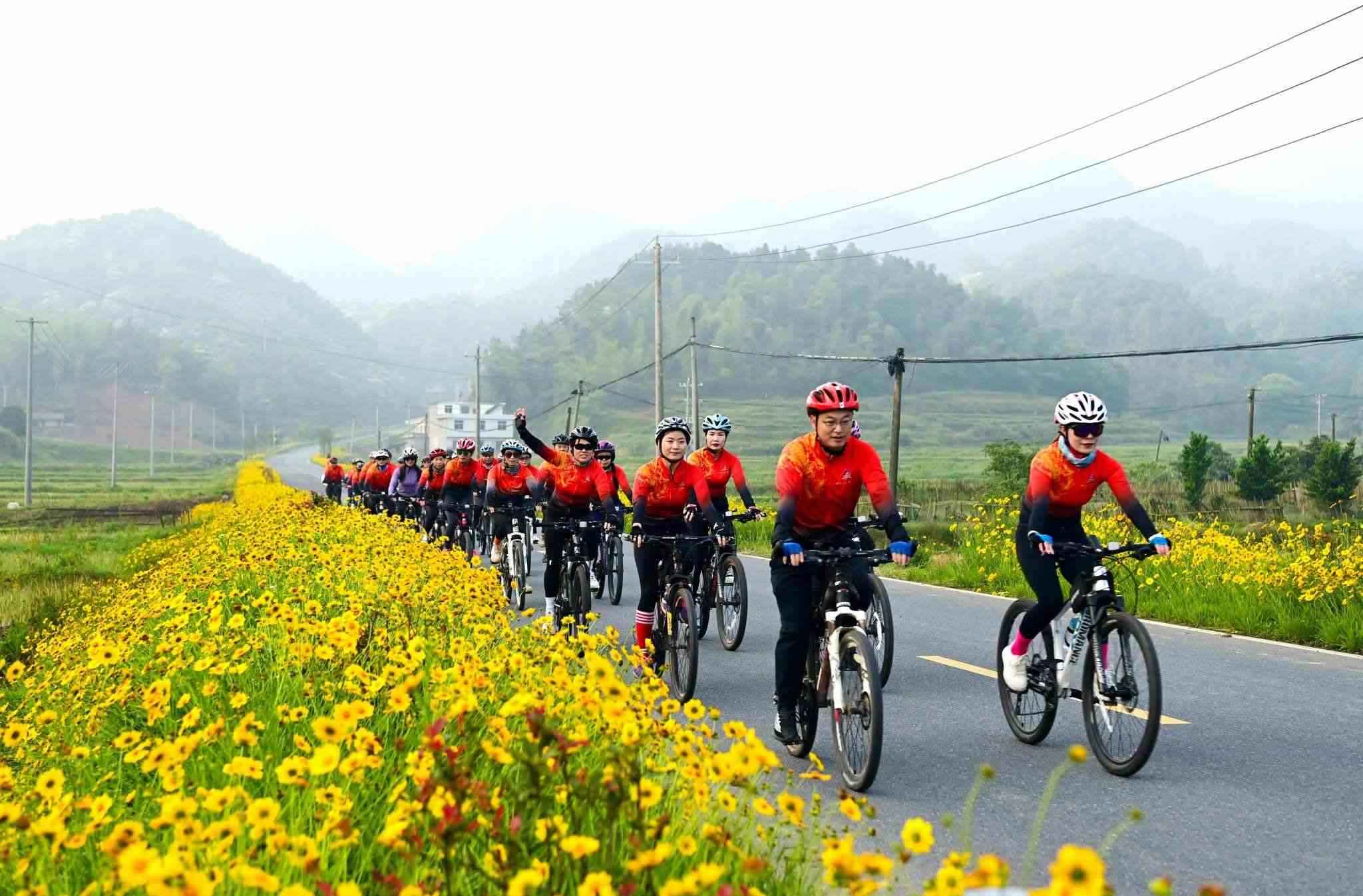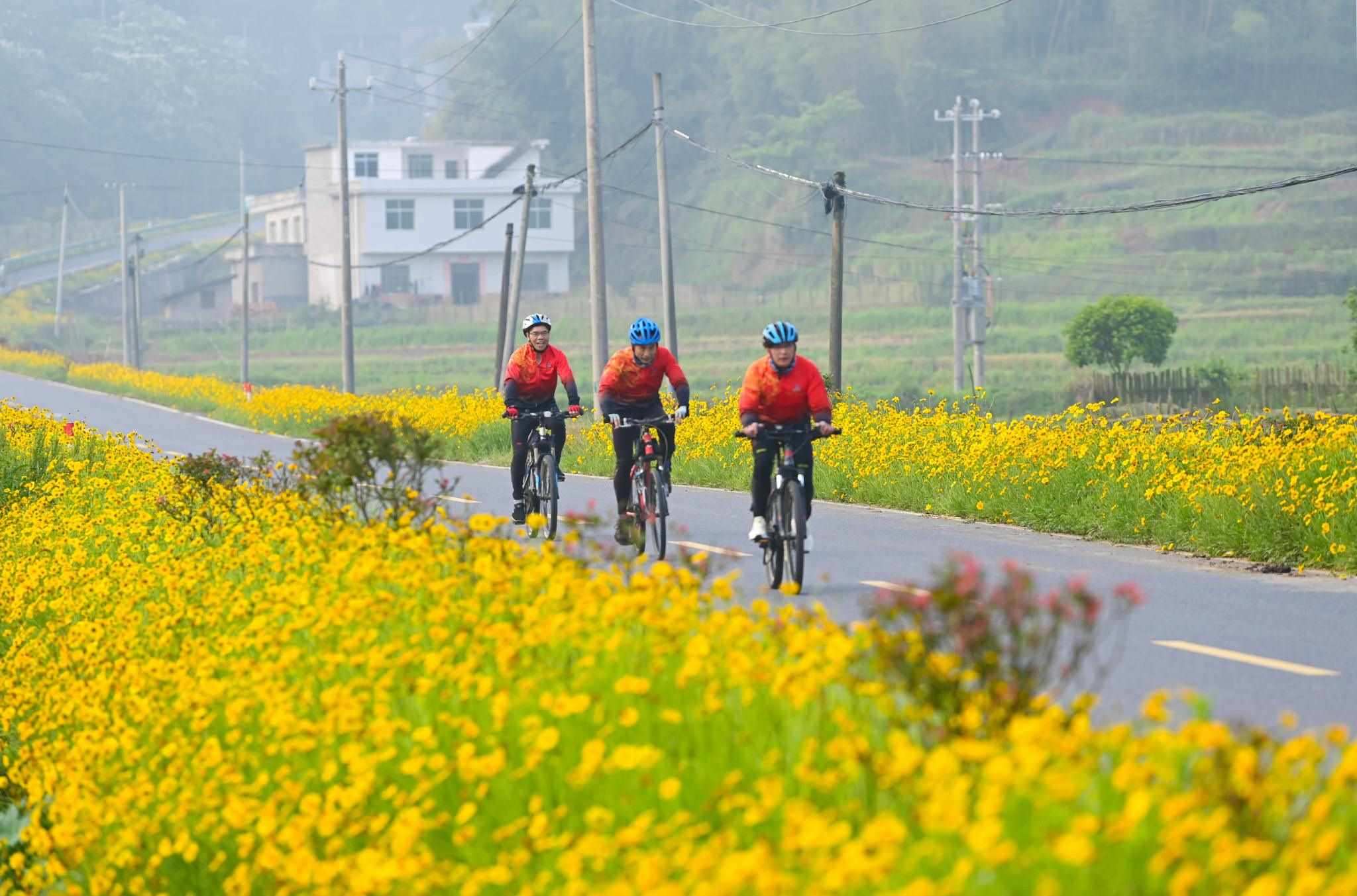 近日,江西省宜春市萬載縣鵝峰鄉(xiāng)多江村通往白良鎮(zhèn)范塘村鄉(xiāng)村公路兩旁的格?;ǜ?jìng)相綻放、搖曳多姿,吸引眾多騎行、攝影愛好者前來游玩打卡。視覺中國