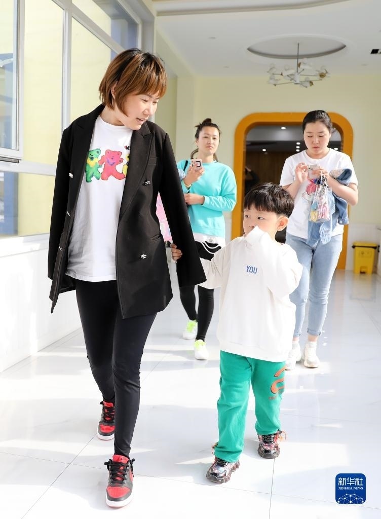 5月11日,兒子拉著韓丹的衣袖,走出幼兒園。