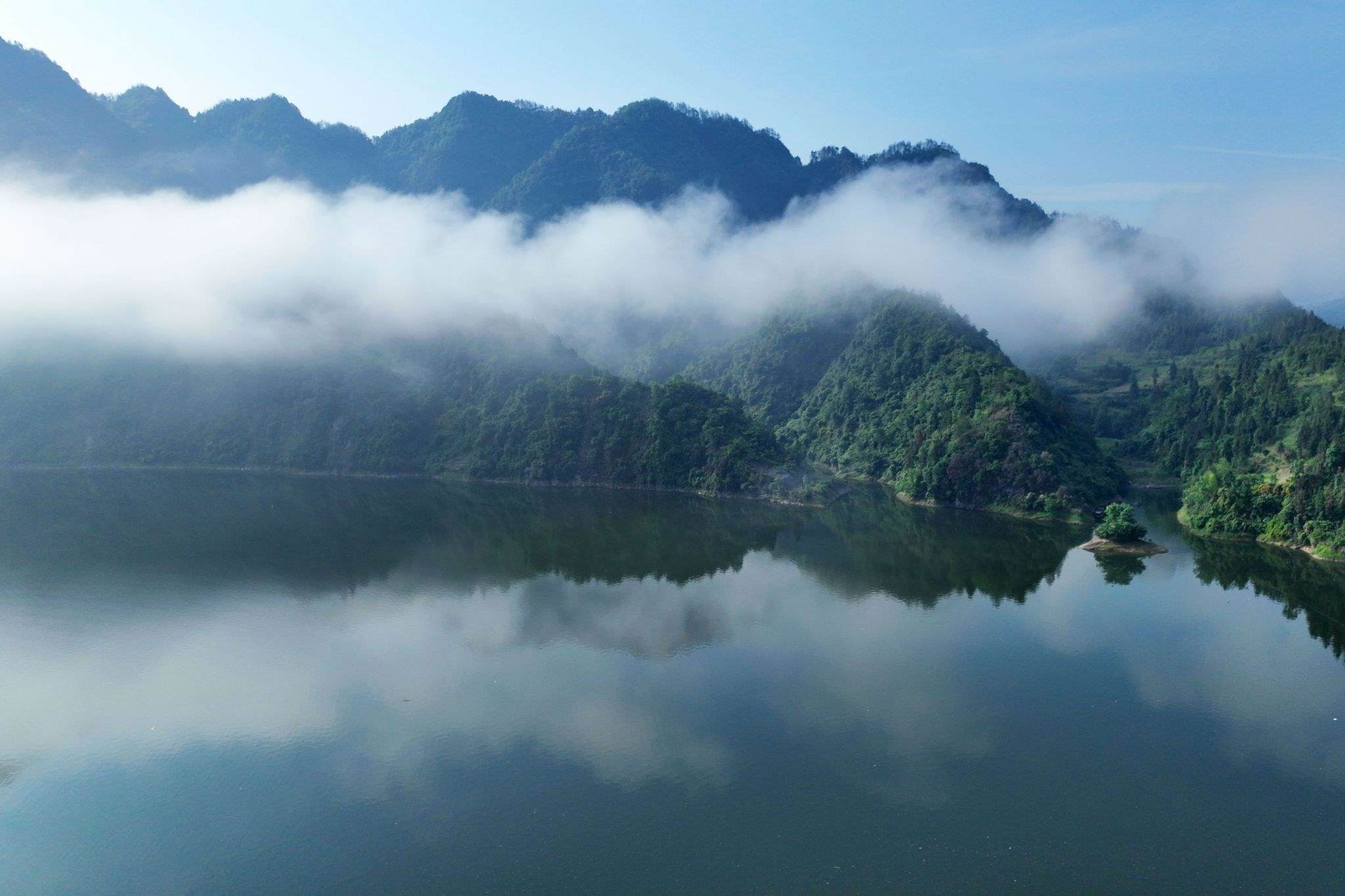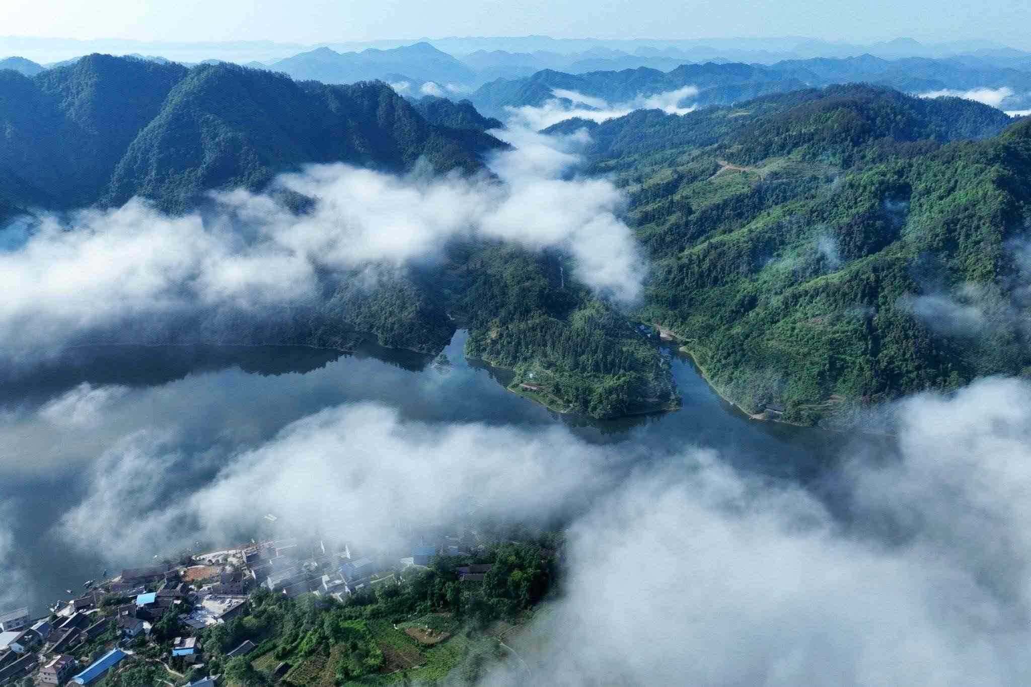 2023年5月18日,重慶,酉陽縣酉水河鎮(zhèn)河灣山寨,晨霧下的酉水河風光。視覺中國