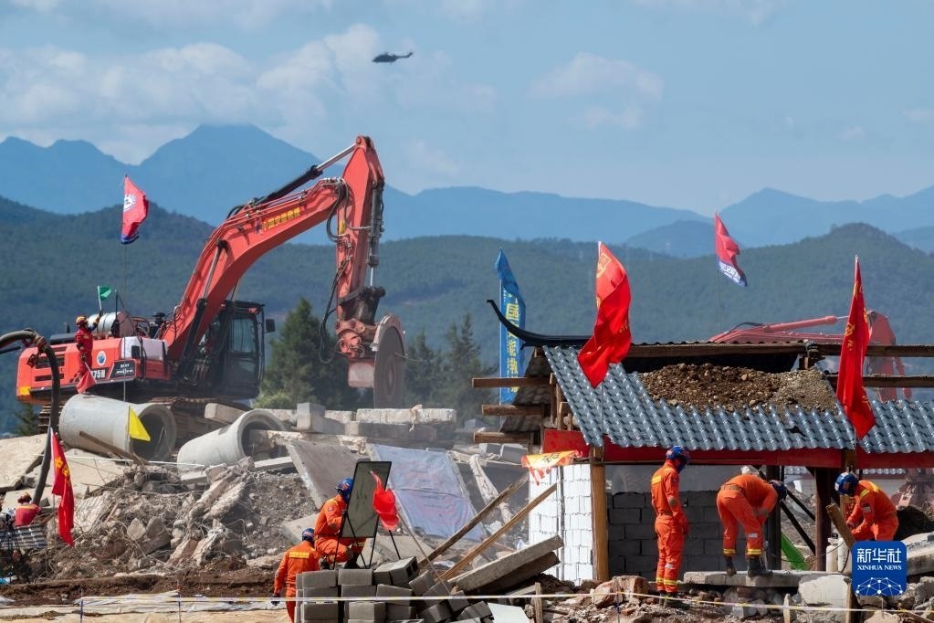 5月16日,參演人員在麗江演習現場進行搜救演練。   新華社記者 陳欣波 攝