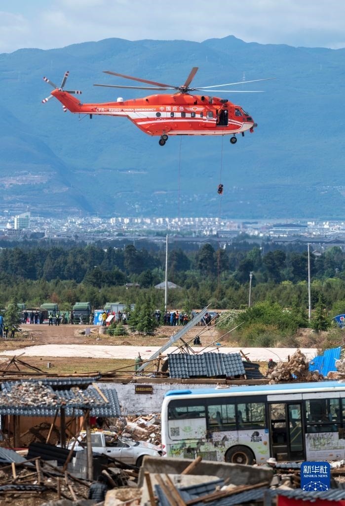 當日,國務院抗震救災指揮部辦公室、應急管理部、云南省人民政府在云南麗江等地聯合舉行高山峽谷地區(qū)地震災害空地一體化聯合救援演習,代號“應急使命·2023”。   新華社記者 陳欣波 攝