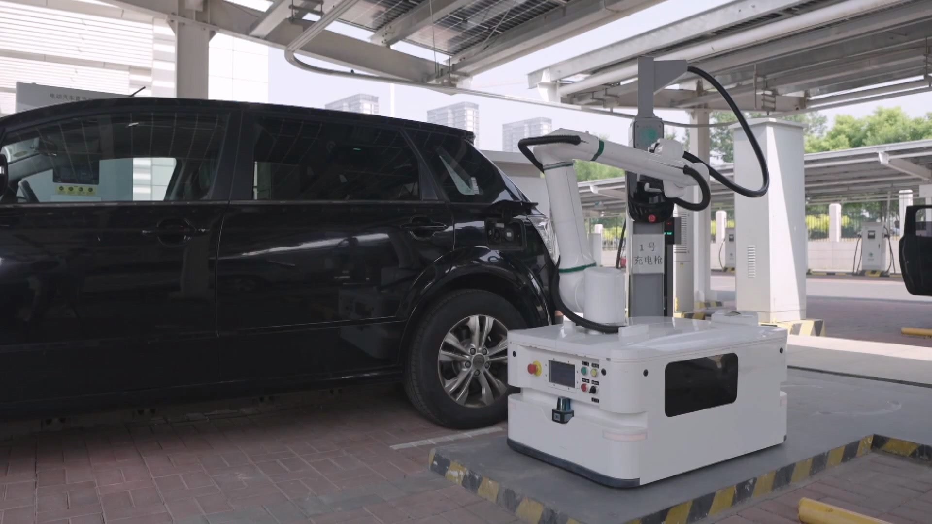 總臺(tái)記者 金美含:智行天下,能動(dòng)未來。新能源車越來越成為城市出行的首選。在天津津門湖新能源車充電站,能源、交通、信息技術(shù)相互賦能,讓充電也有了科技感。車一入位,自動(dòng)充電機(jī)器人就通過視覺人工智能和力控感知等技術(shù),用機(jī)械臂自動(dòng)完成充電,整個(gè)過程,還有智能巡檢機(jī)器人為您保駕護(hù)航。智能運(yùn)營中心通過大數(shù)據(jù)為各個(gè)環(huán)節(jié)提供技術(shù)支撐,每年可減少碳排放5000噸以上,形成綠色、智慧的能源網(wǎng)。