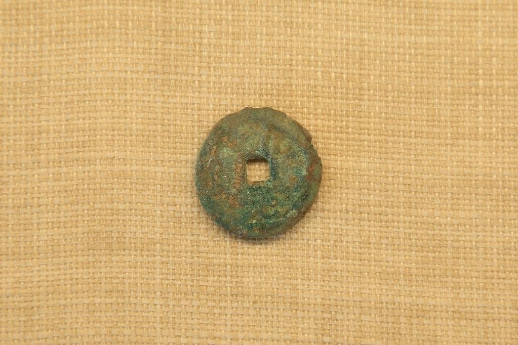 托庫孜薩來(唐王城)遺址發(fā)掘出土并展出的乾元重寶。(賀浩攝)