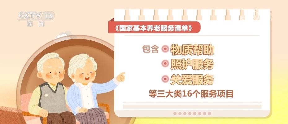 《國家基本養(yǎng)老服務(wù)清單》的內(nèi)容,包含物質(zhì)幫助、照護(hù)服務(wù)、關(guān)愛服務(wù)等三大類16個(gè)服務(wù)項(xiàng)目。