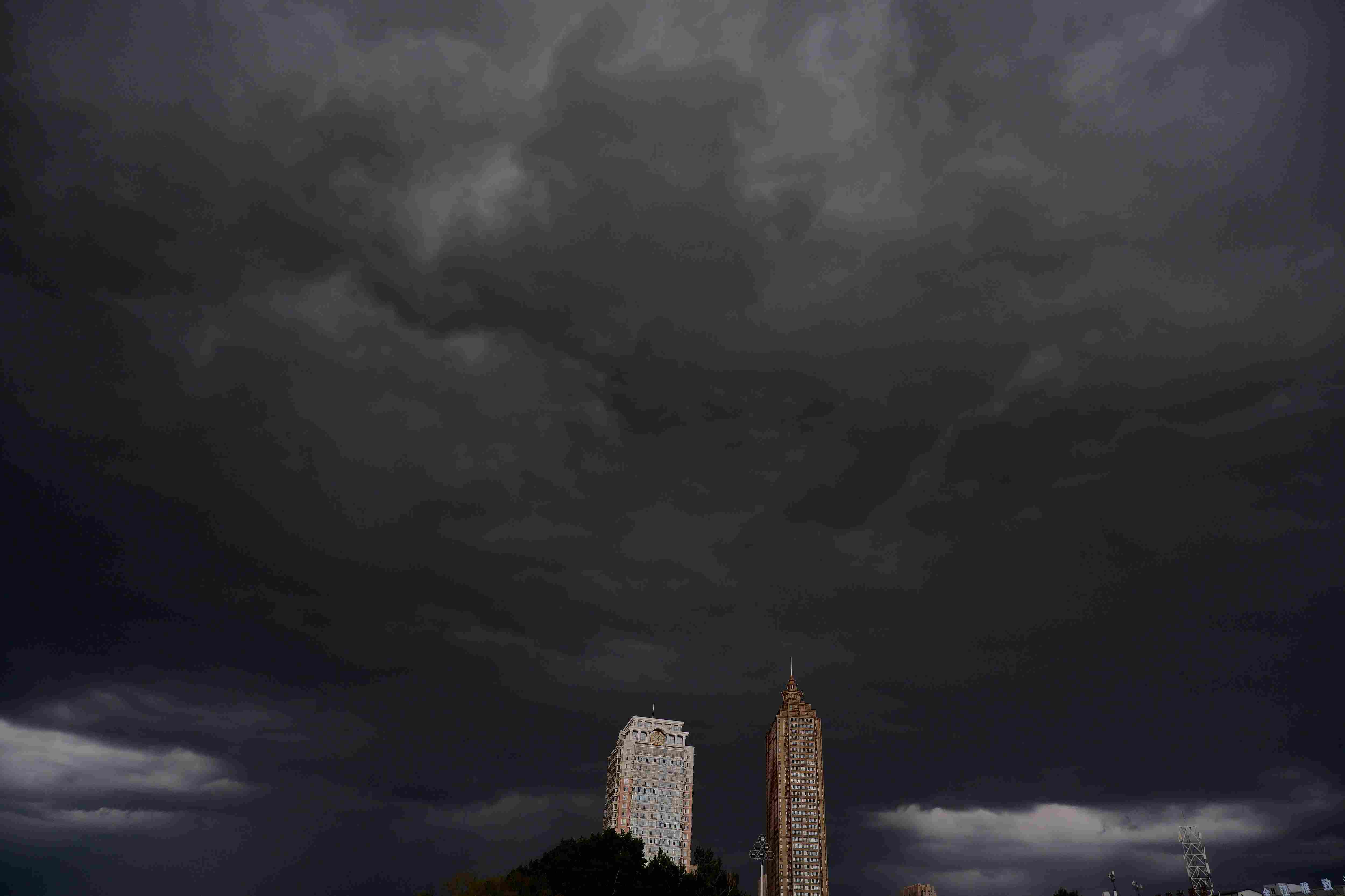 暴風(fēng)雨來(lái)襲!哈爾濱烏云壓城白晝?nèi)缫?/strong>