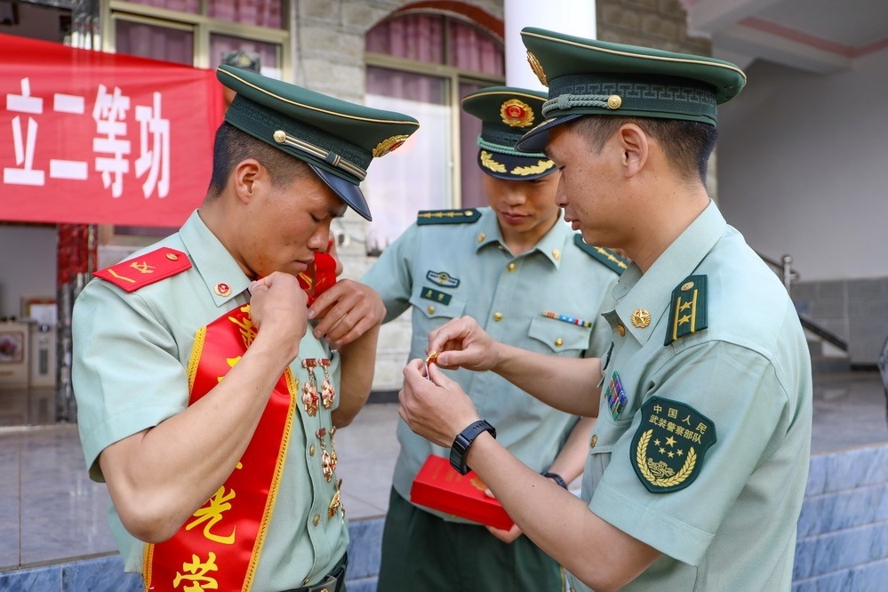 鑼鼓喧天,鞭炮齊鳴。近日,云南省楚雄彝族自治州大姚縣桂花鎮(zhèn)大河村張燈結(jié)彩、熱鬧非凡,武警云南總隊(duì)昭通支隊(duì)派出送喜報(bào)小分隊(duì)輾轉(zhuǎn)600余公里來到這里,聯(lián)合當(dāng)?shù)厝宋洳亢屯艘圮娙耸聞?wù)局,為榮立個(gè)人二等功的現(xiàn)役軍人鄒永金的家屬送去喜報(bào)、牌匾和慰問金。