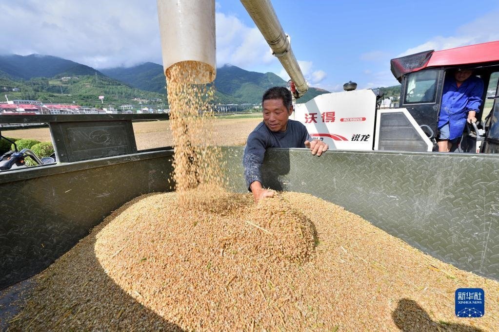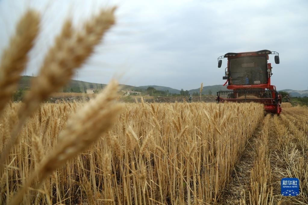 三夏時(shí)節(jié),各地小麥陸續(xù)成熟,麥田流金,呈現(xiàn)豐收的喜人景象。   新華社發(fā)(吳樹(shù)建攝)