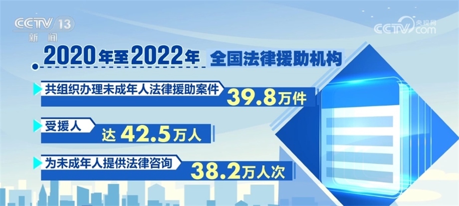 司法部相關(guān)負責人在發(fā)布會上介紹,2020年,司法部印發(fā)《未成年人法律援助服務(wù)指引(試行)》,以專章形式規(guī)范了辦理性侵害未成年人法律援助案件的工作程序和服務(wù)標準。據(jù)統(tǒng)計,2020年至2022年,全國法律援助機構(gòu)共組織辦理未成年人法律援助案件39.8萬件,受援人達42.5萬人,為未成年人提供法律咨詢38.2萬人次。