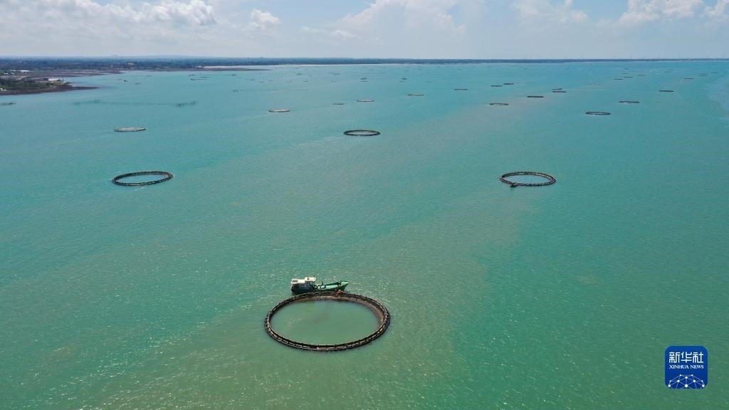 湛江徐聞西連鎮(zhèn)的“海上牧場(chǎng)”(5月27日攝,無(wú)人機(jī)全景照片)。