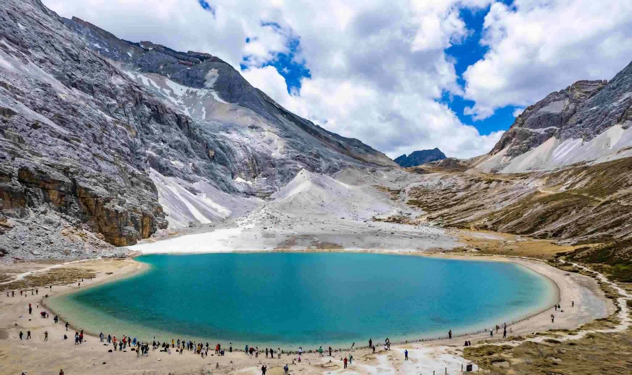2023年5月25日,四川甘孜,航拍稻城縣亞丁自然保護(hù)區(qū)的牛奶海景區(qū)。視覺(jué)中國(guó)