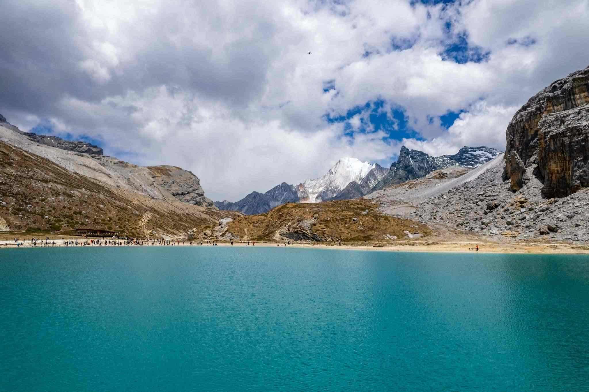 四川甘孜:陽(yáng)光照射牛奶海 湖面波光粼粼