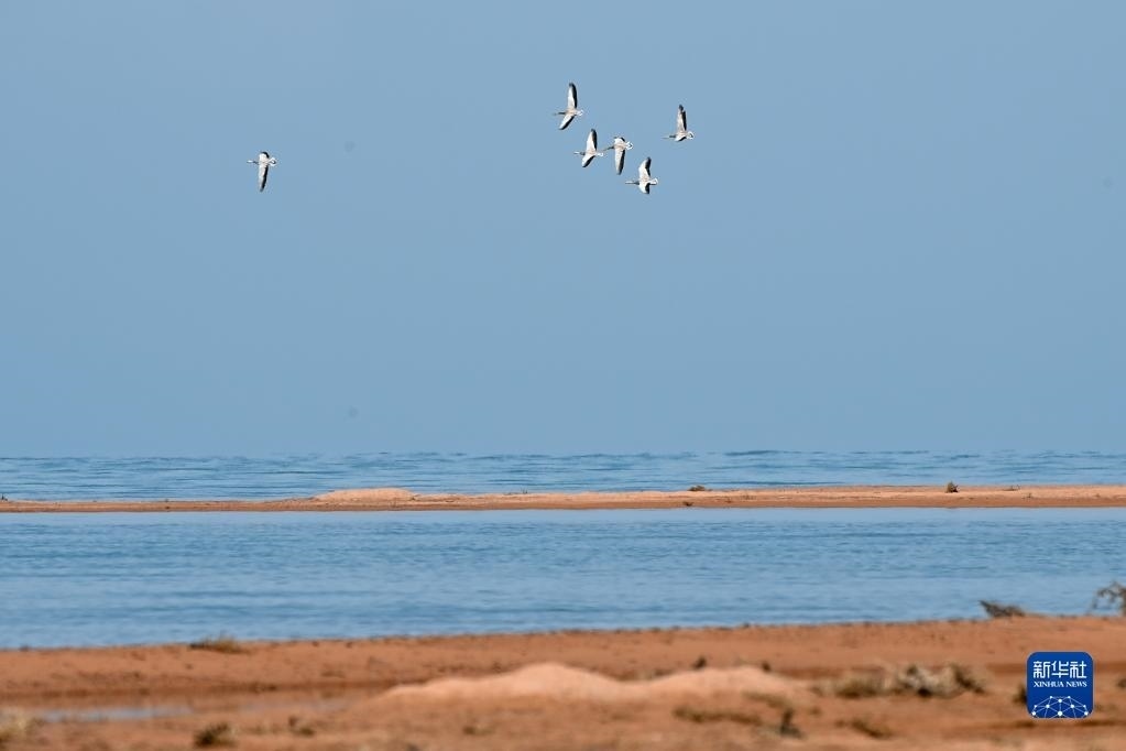 一群斑頭雁在阿爾金山國(guó)家級(jí)自然保護(hù)區(qū)飛翔(5月23日攝)。