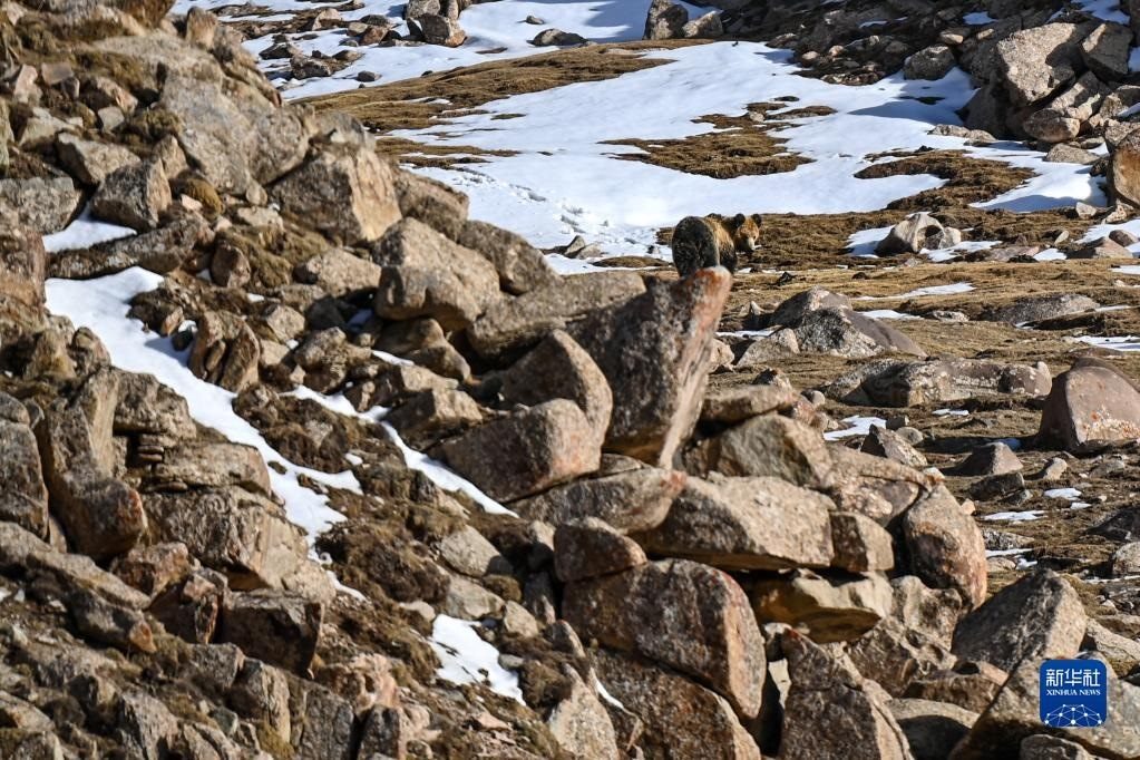 一頭藏馬熊在阿爾金山國(guó)家級(jí)自然保護(hù)區(qū)覓食(5月23日攝)。