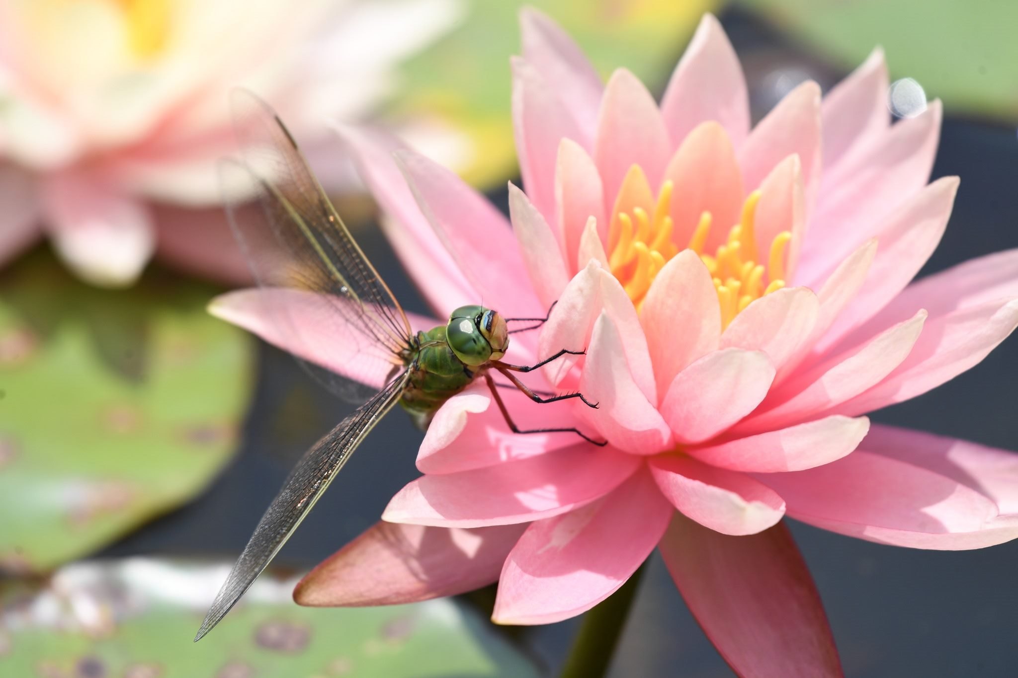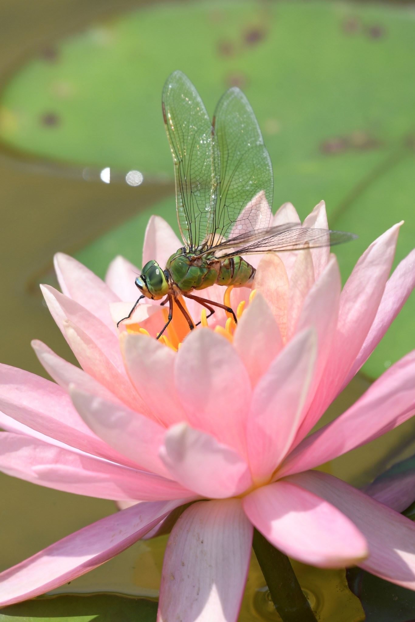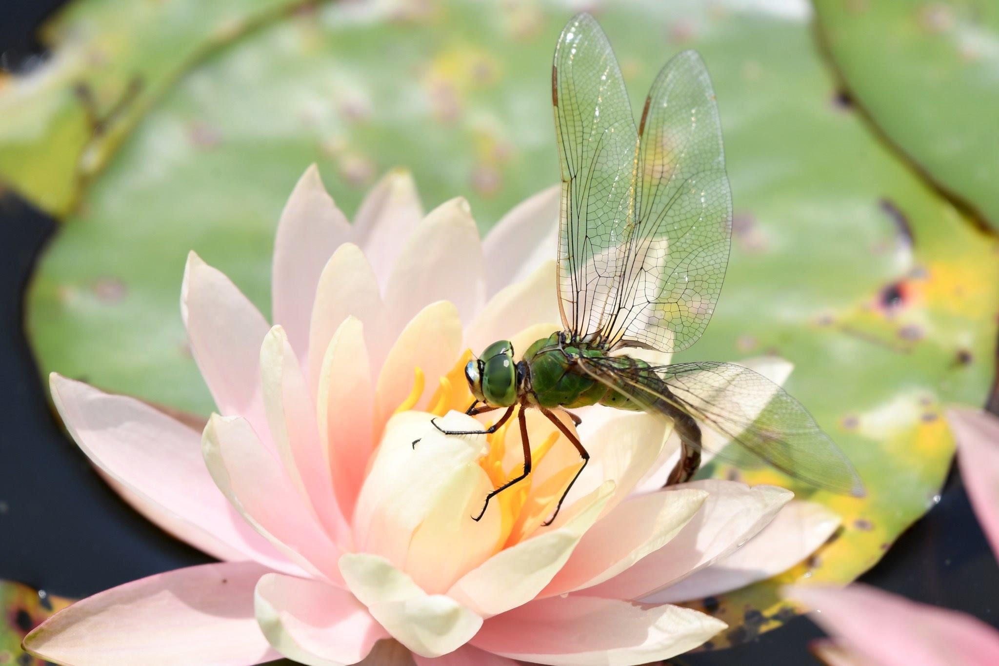 貴州仁懷:池塘睡蓮綻放 蜻蜓花間歇息