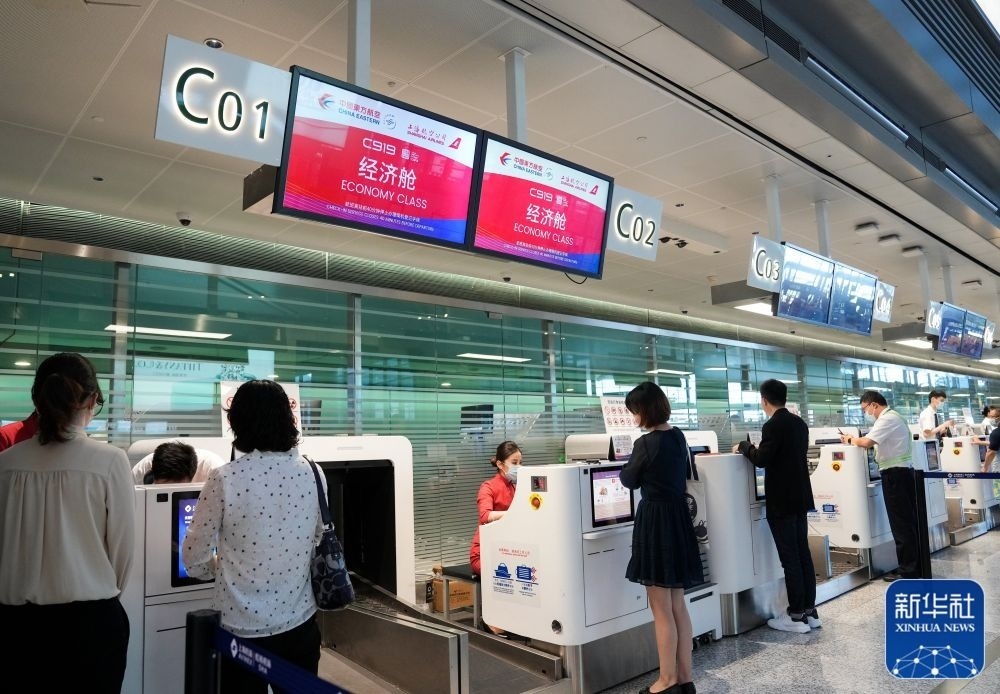 5月28日,旅客在航站樓辦理登機手續(xù)。新華社記者丁汀攝