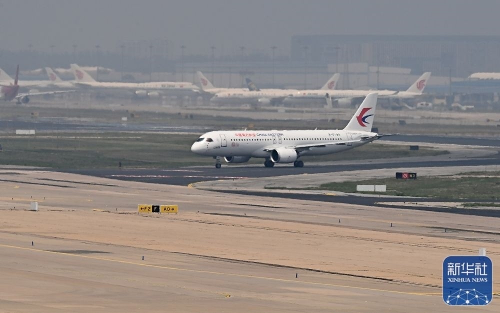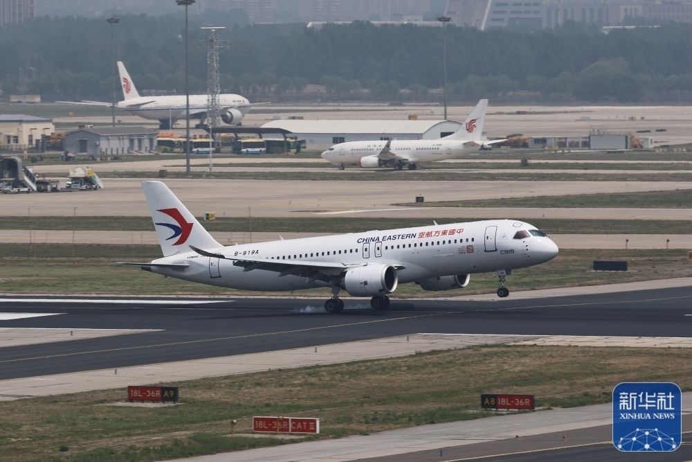 當(dāng)日,C919首個商業(yè)航班東航MU9191從上海虹橋國際機場起飛,安全抵達北京首都國際機場。