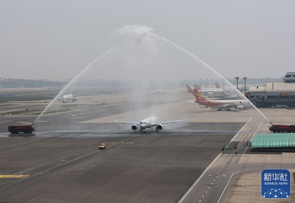 5月28日,C919首個商業(yè)航班東航MU9191飛抵北京首都國際機場。新華社記者鞠煥宗攝