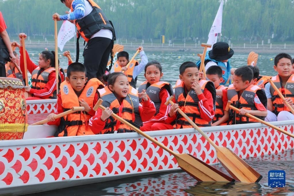 5月27日,在北京半壁店村,老撾學生和北京八一學校的學生舉行龍舟友誼賽。
