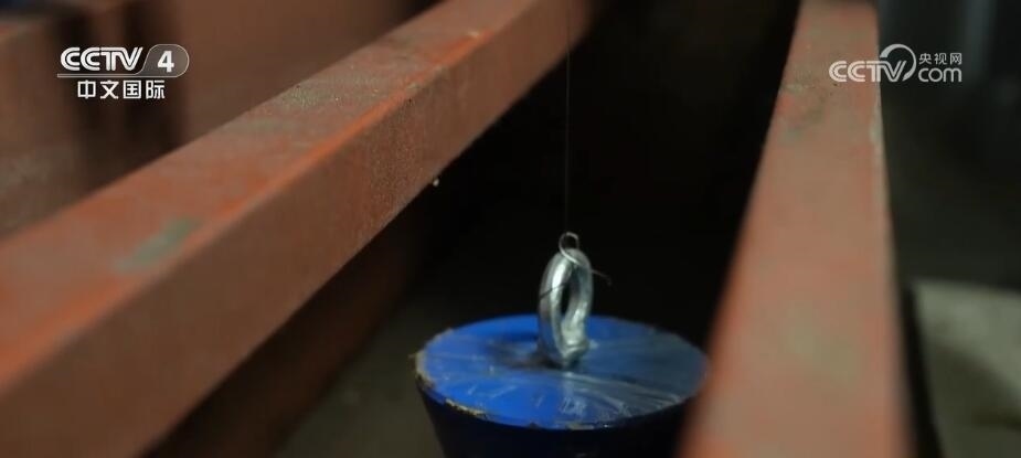 中國船舶外高橋造船大型郵輪項目技術副經理 李嘉寧:這是一個擺錘,它很重的。這個是一個油槽,里面放滿油,上面布置鋼尺,會精確地讀數(shù)。當船發(fā)生傾斜之后,(通過)擺錘移動多少的距離就可以知道這個船橫傾的狀態(tài)。郵輪傾斜試驗獲得船舶的重量和重心這兩個數(shù)據(jù),是大型郵輪最重要的兩個數(shù)據(jù)指標,因為它決定了這條船將來到海上航行的穩(wěn)性安全。