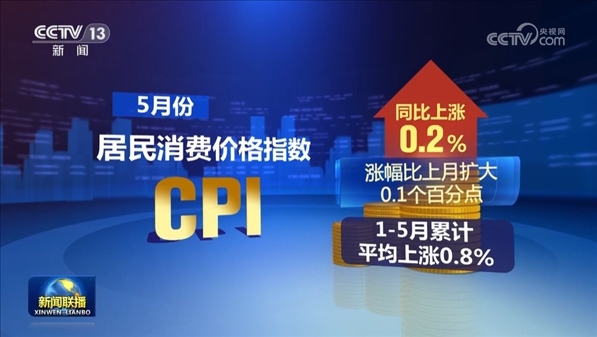 從同比看,5月份,居民消費(fèi)價(jià)格指數(shù)CPI同比上漲0.2%,漲幅比上月擴(kuò)大0.1個(gè)百分點(diǎn),1—5月累計(jì)平均上漲0.8%。