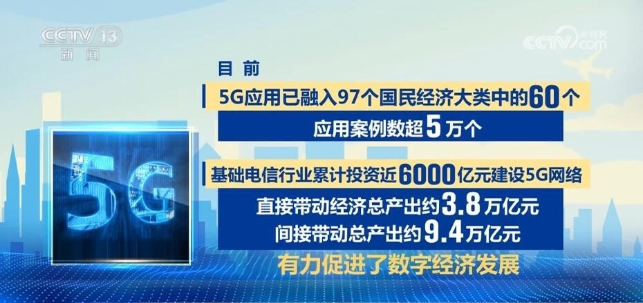 目前,5G應(yīng)用已融入97個國民經(jīng)濟大類中的60個,應(yīng)用案例數(shù)超5萬個。基礎(chǔ)電信行業(yè)累計投資近6000億元建設(shè)5G網(wǎng)絡(luò),直接帶動經(jīng)濟總產(chǎn)出約3.8萬億元,間接帶動總產(chǎn)出約9.4萬億元,有力促進了數(shù)字經(jīng)濟發(fā)展。
