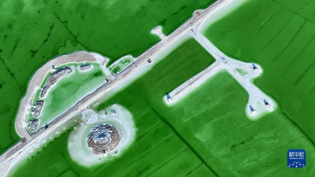 這是6月8日拍攝的察爾汗鹽湖景色(無人機(jī)照片)。
