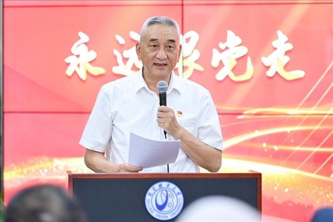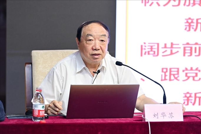 觀展后,參會(huì)嘉賓與管理學(xué)院200多名學(xué)生黨員及入黨積極分子在南院報(bào)告廳,共同開展“同上一堂主題教育專題黨課,在黨的旗幟下勝利前進(jìn)”黨課活動(dòng)。此次講座由管理學(xué)院黨委書記張玲娜主持,由北京新四軍暨華中抗日根據(jù)地研究會(huì)原副會(huì)長(zhǎng)劉華蘇主講。