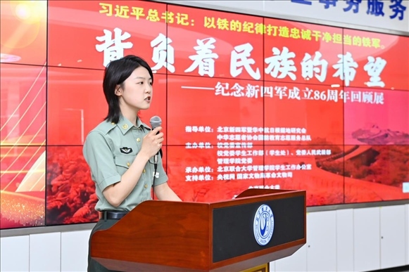 為深入學(xué)習(xí)貫徹習(xí)近平新時(shí)代中國(guó)特色社會(huì)主義思想主題教育,落實(shí)習(xí)近平加強(qiáng)全民國(guó)防教育的重要指示精神,弘揚(yáng)愛國(guó)主義精神、增強(qiáng)全民國(guó)防意識(shí),推動(dòng)全民國(guó)防教育進(jìn)校園,深化學(xué)?!按笏颊n”建設(shè),6月9日,由北京新四軍暨華中抗日根據(jù)地研究會(huì)、中華志愿者協(xié)會(huì)國(guó)防教育志愿服務(wù)總隊(duì)指導(dǎo),北京聯(lián)合大學(xué)黨委學(xué)生工作部(學(xué)生處)、黨委人民武裝部、黨委宣傳部、北京聯(lián)合大學(xué)新時(shí)代文明實(shí)踐中心建設(shè)規(guī)劃研究所、管理學(xué)院黨委共同主辦,管理學(xué)院學(xué)生工作辦公室承辦的“背負(fù)民族希望——紀(jì)念新四軍成立86周年回顧展”大會(huì)在北四環(huán)校區(qū)學(xué)生事務(wù)大廳舉行。