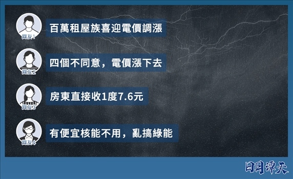 更讓?shí)u內(nèi)民眾憤怒的是,用電沒(méi)有保障,電價(jià)還屢屢上漲。去年7月和今年4月,臺(tái)灣電力公司(“臺(tái)電”)已兩度調(diào)漲電價(jià),平均累計(jì)漲幅近20%。而當(dāng)6月到9月實(shí)行“夏月電價(jià)”時(shí),電價(jià)還將創(chuàng)下臺(tái)灣地區(qū)史上新高。