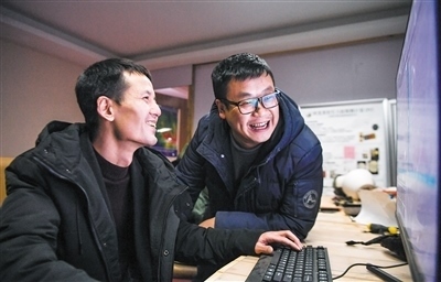 國家天文臺(tái)阿里觀測站駐站工程師尤顯龍(左)和同事唐鵬在討論觀測到的數(shù)據(jù)。新華社記者 晉美多吉攝