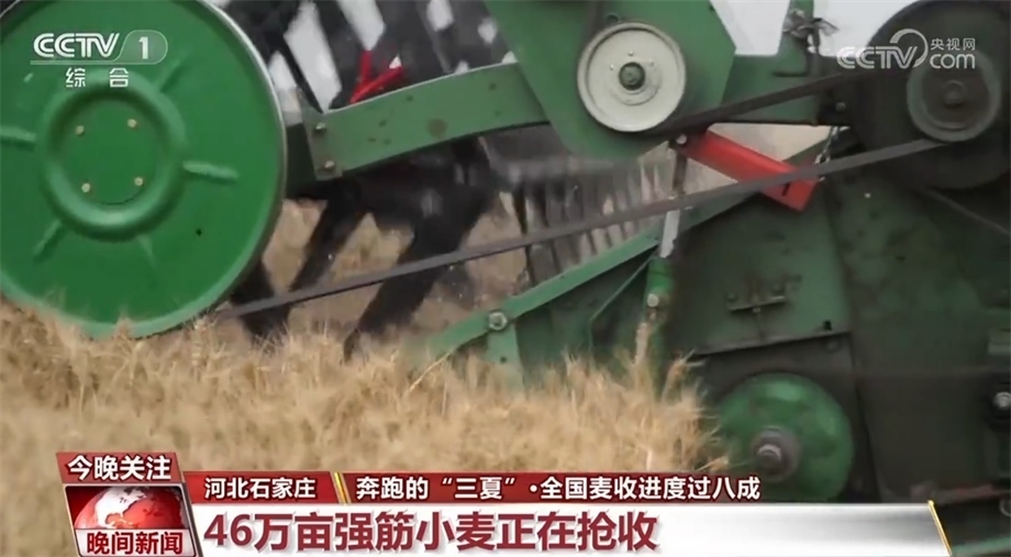 河北省石家莊市藁城區(qū)的46萬(wàn)畝強(qiáng)筋小麥正在搶收,今年這里的小麥進(jìn)一步推行規(guī)模化種植、標(biāo)準(zhǔn)化生產(chǎn)、專(zhuān)業(yè)化收儲(chǔ)。