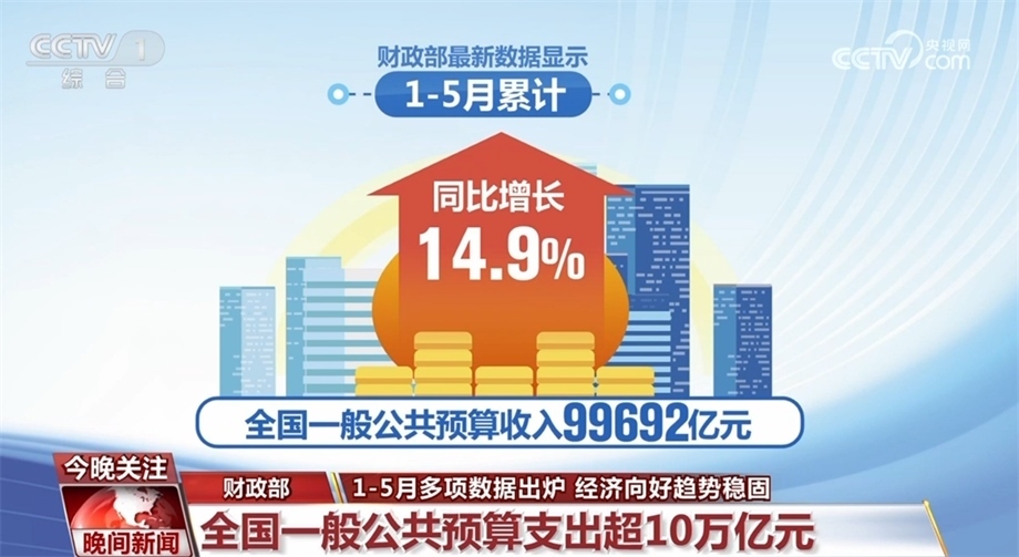 財(cái)政部最新數(shù)據(jù)顯示,1—5月累計(jì),全國一般公共預(yù)算收入99692億元,同比增長14.9%;全國一般公共預(yù)算支出104821億元,同比增長5.8%。教育、科學(xué)技術(shù)、社會保障和就業(yè)、衛(wèi)生健康等支出,同比增長均超過5%。