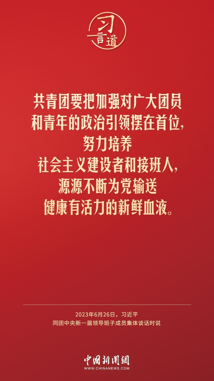 6月26日,中共中央總書記、國家主席、中央軍委主席習近平在中南海同團中央新一屆領導班子成員集體談話并發(fā)表重要講話。習近平指出——