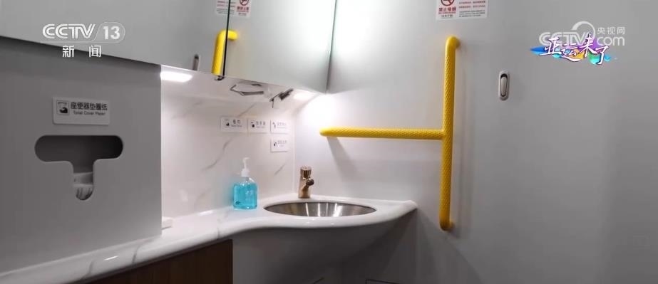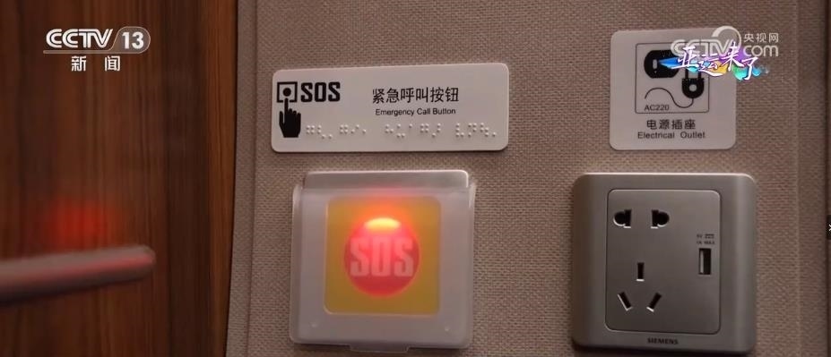動車組的4號車廂為無障礙車廂,有無障礙衛(wèi)生間、輪椅存放區(qū),還有盲文標識以及相應的設施設備,為乘客提供無障礙出行服務。