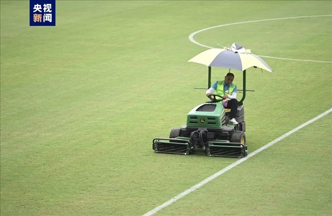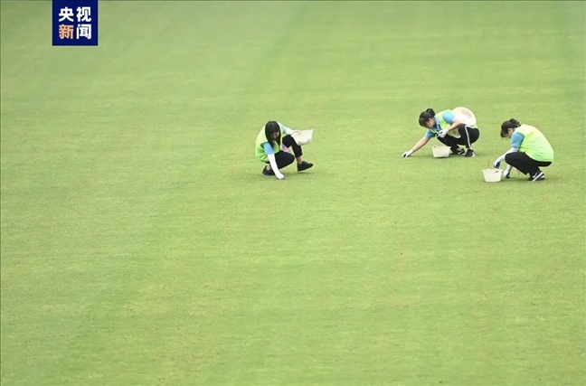 9月19日晚場(chǎng)比賽結(jié)束,運(yùn)動(dòng)員退場(chǎng)后,何東奇和草皮維護(hù)組的伙伴們立刻進(jìn)場(chǎng),開始對(duì)整個(gè)場(chǎng)地的草坪進(jìn)行巡查修整。9個(gè)人一直工作到夜里12時(shí)多,完成了賽后草坪維護(hù)保養(yǎng)工作,“我回到駐地洗完澡休息已經(jīng)1:30了?!标悜c玉說道。