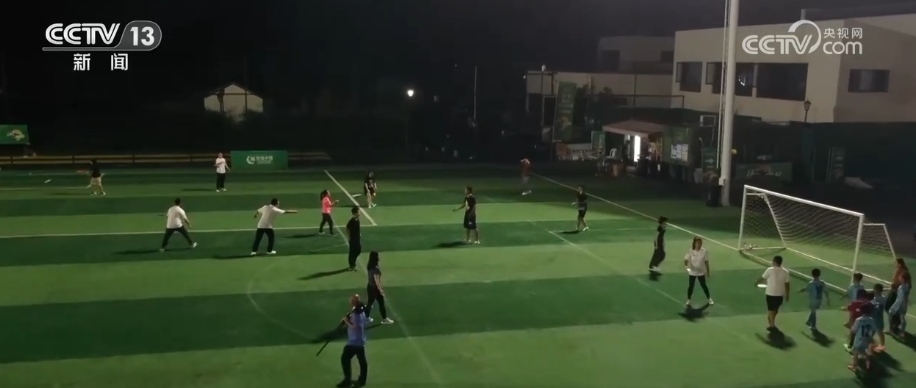 總臺記者 李欣蔓:新港村足球場占地約26畝,包含兩塊標(biāo)準(zhǔn)的11人制足球場。五六年前,這里還是一片被騰退的低小散企業(yè)所剩下的老廠房。2019年,村里建起了第一塊專業(yè)的運動場地。2023年以來,這里已經(jīng)承接了35場足球賽,各類包場活動達(dá)到80多次。除了承接活動和比賽,這塊場地還免費向村民和散客開放。