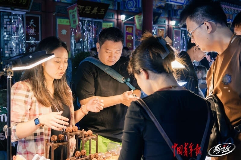夜幕降臨,北京潘家園舊貨市場(chǎng)內(nèi)的周三夜場(chǎng)開(kāi)啟,攤位上亮起了一盞盞照明的小燈,很多年輕人正在攤位前選購(gòu)商品。實(shí)習(xí)生 邱嵐/攝