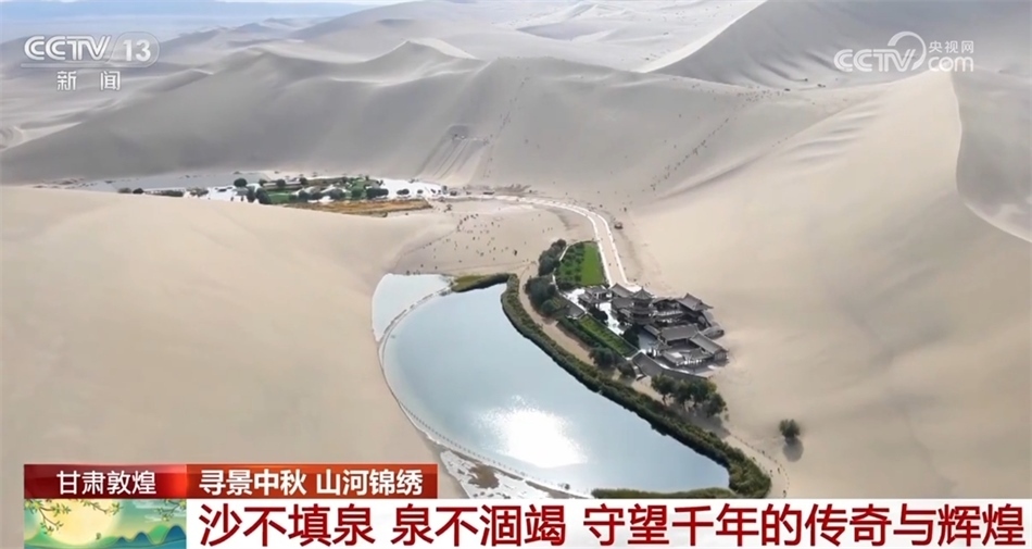風(fēng)卷飛沙,月牙泉水卻始終碧波蕩漾,這里是甘肅敦煌。沙不填泉,泉不涸竭,鳴沙山與月牙泉就這樣守望千年,也吸引著世界各地的人們前來領(lǐng)略瀚海風(fēng)光。今年中秋和國(guó)慶假期,景區(qū)游客數(shù)量預(yù)計(jì)突破20萬人次。古道駝鈴,沙漠綠洲,風(fēng)聲、水聲伴著沙丘移動(dòng)的聲音,千百年來,大自然一直在用最恢弘的方式訴說著一個(gè)天地之間的傳奇與輝煌。