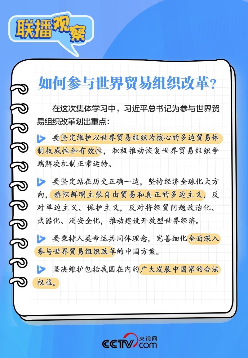 9月27日,二十屆中央政治局進行第八次集體學(xué)習(xí),學(xué)習(xí)的主題是“世界貿(mào)易組織規(guī)則與世界貿(mào)易組織改革”。中央政治局的同志認真聽取了專家講解,并進行了討論。習(xí)近平總書記在聽取講解和討論后發(fā)表了重要講話。