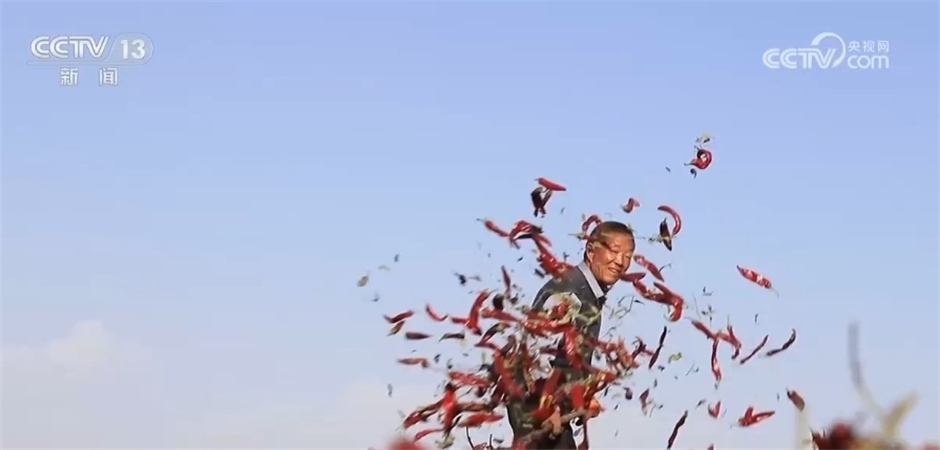 跟隨鏡頭,我們來到了新疆巴州和碩縣廣袤的戈壁灘上。眼下,50多萬畝紅辣椒進入全面采收晾曬季,放眼望去,一片片“紅色地毯”散發(fā)著熱辣的氣息。遍地的紅辣椒被有序鋪開,村民們穿梭其中,透著豐收的喜悅。當?shù)剞r業(yè)部門測算,今年當?shù)乩苯樊a量可達140萬噸以上,辣椒采收及晾曬工作將持續(xù)至11月前后。