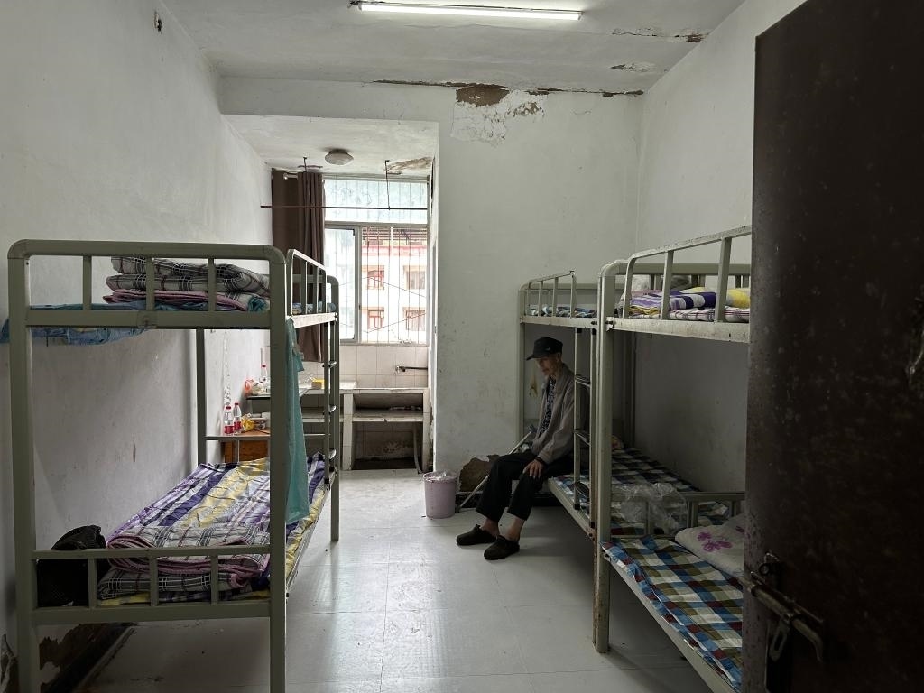 太白西村4組村民譚建和老爺爺行動不便,坐在鋪著干凈格子床單的宿舍床上望向窗外。“前天下午,社區(qū)的車來接的我和老伴,安置點吃喝都好,宿舍住起來也挺舒服。兒子們擔心我,他們過不來,一天就打好幾通電話,我說都好著呢、好著呢?!弊T爺爺說。