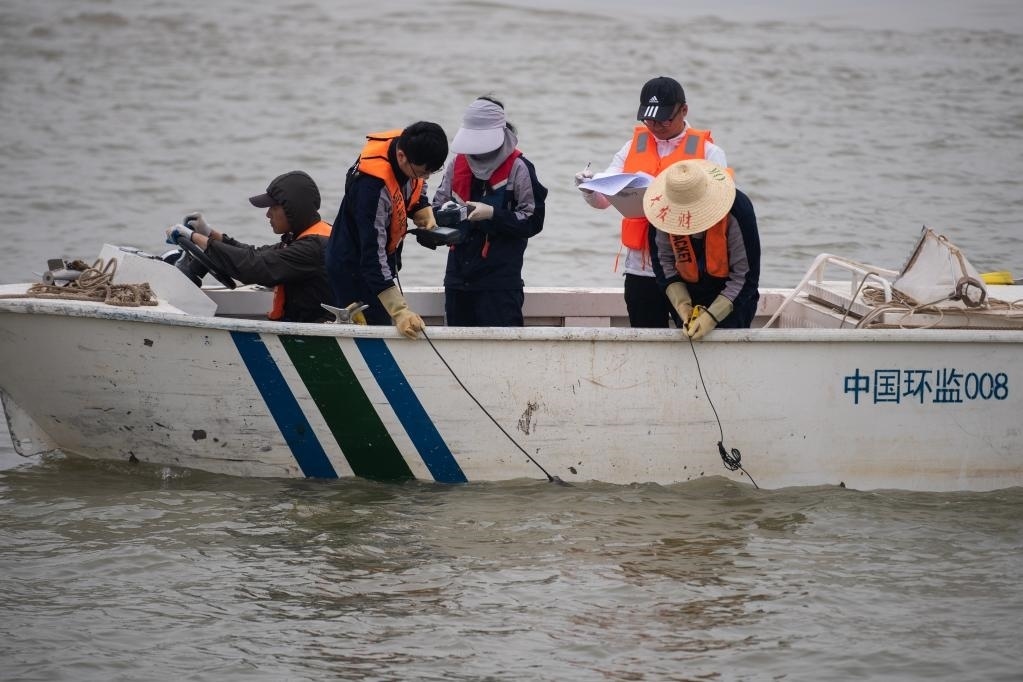 監(jiān)測(cè)人員現(xiàn)場(chǎng)測(cè)定水生態(tài)環(huán)境參數(shù)(2023年5月13日攝)。新華社記者肖藝九 攝