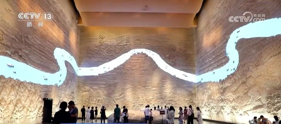 此外,不同于“文物+講解”的傳統(tǒng)展覽形式,博物館試圖將隋唐大運(yùn)河整體“搬進(jìn)”展廳。在這里,游客不僅能近距離觀察從古洛河河道中打撈出的“洛陽(yáng)運(yùn)河一號(hào)”古沉船,還能在浮雕墻前縱覽大運(yùn)河脈絡(luò)全貌,更能走進(jìn)精致復(fù)原的新潭碼頭,與歷史“對(duì)話”。