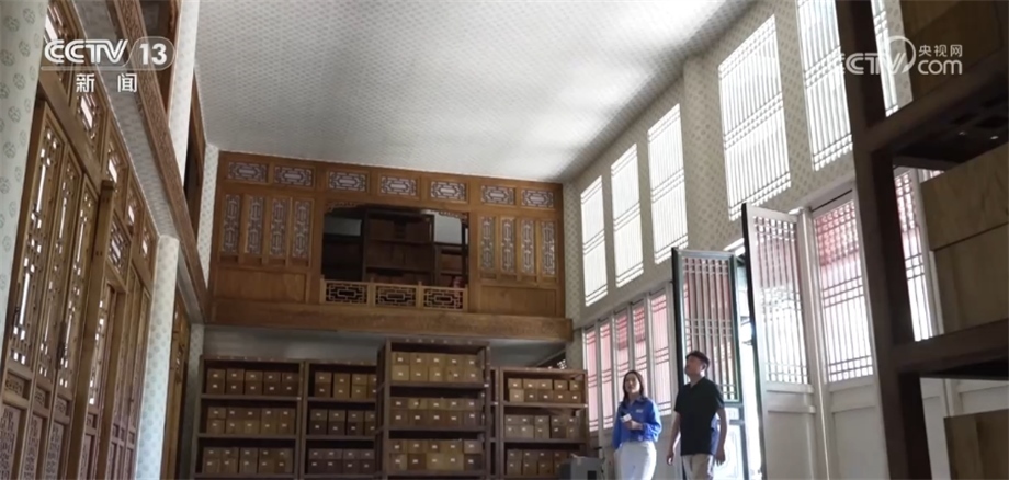 總臺記者 楊海靈:進(jìn)來就能明顯感覺到這是一個藏書閣,可以說這是當(dāng)年皇家專用圖書館,能夠看到圖書館有放書的地方,那么當(dāng)年在這兒有沒有開辟讀書的區(qū)域??