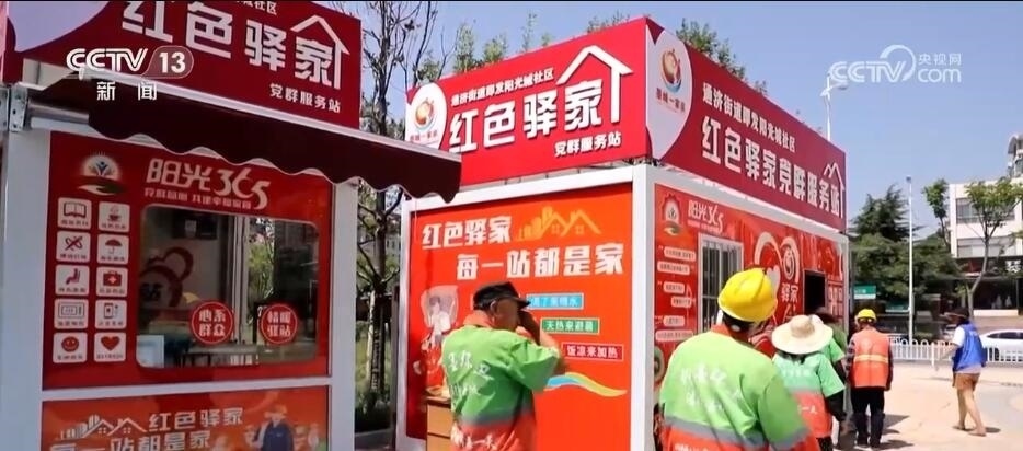 在青島市即墨區(qū),34處新啟用的“紅色驛家”黨群服務(wù)站,成了環(huán)衛(wèi)工人們歇腳的新去處。這些“紅色驛家”配備空調(diào),可以提供應(yīng)急充電、免費飲水、急救藥箱、愛心雨傘等13項服務(wù)。