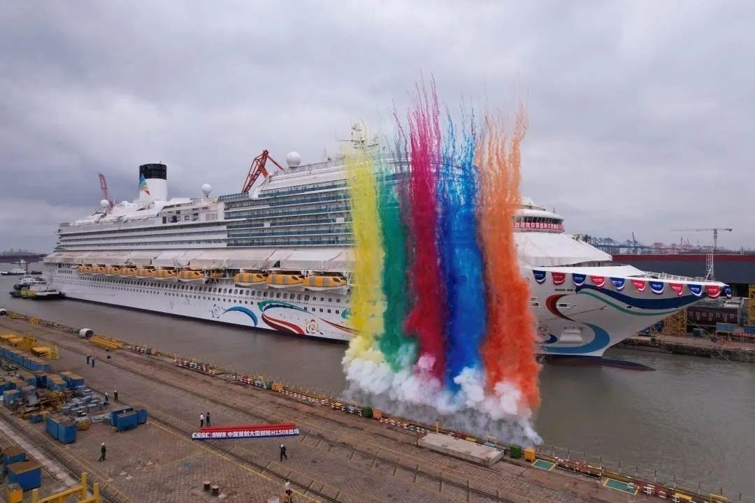 △2023年6月6日,首艘國產(chǎn)大型郵輪愛達(dá) 魔都號在上海外高橋造船廠完成塢內(nèi)系列試驗后正式出塢。