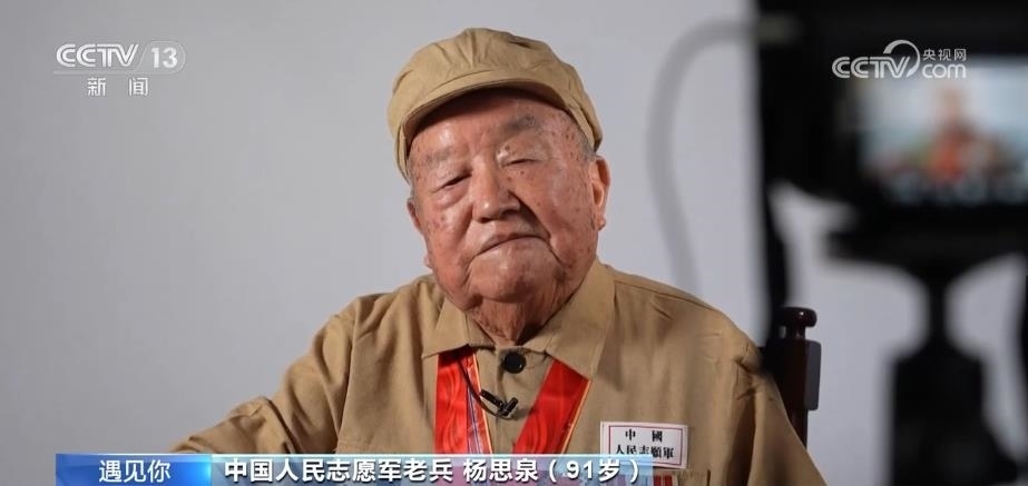 中國人民志愿軍老兵 楊思泉:我叫楊思泉,1950年入朝,當時在九兵團后勤部。我們是后勤,正在吃飯的時候飛機來了,幾個炸彈以后,我們7個兄弟都走了,很危險。最危險就是我有一次送信,還沒走多遠飛機就來了,我把自行車放一邊,在槐樹底下蹲著,自行車大梁給我打斷了,炸彈就在邊上炸的。我覺得耽誤急事(送信)不行,那個時候、那個年代,不由自主,沒有說把自己的生命看得太重,上去只有知道怎么打,沒有考慮自己的生死。 ?