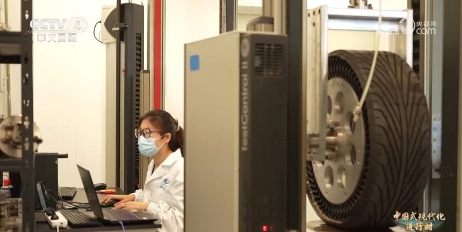 總臺(tái)央視記者 宋達(dá):位于廣州黃埔的航空輪胎大科學(xué)中心是中國第一家航空輪胎動(dòng)力學(xué)大科學(xué)裝置。目前,裝置設(shè)備已經(jīng)基本安裝完畢,主要包括高加速試驗(yàn)臺(tái)、高性能輪胎地面環(huán)境模擬試驗(yàn)臺(tái)等裝置,可以滿足大飛機(jī)各類性能測試。國產(chǎn)民用航空輪胎看似普通,卻與高端芯片、光刻機(jī)等高科技一同列入科研任務(wù)清單,成為中國急需解決的“卡脖子”難題。