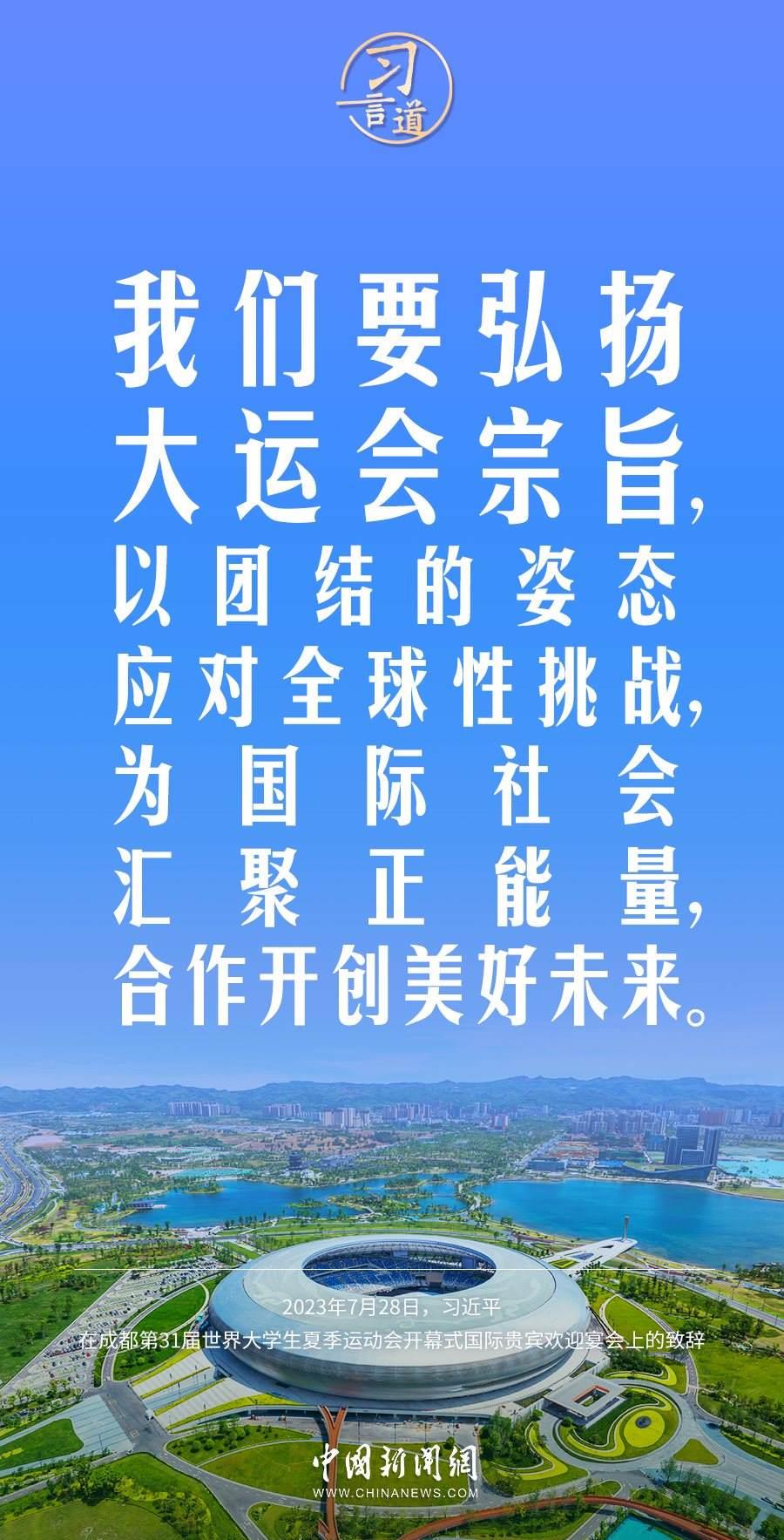 7月28日中午,國家主席習(xí)近平和夫人彭麗媛在四川省成都市金牛賓館舉行宴會,歡迎出席成都第31屆世界大學(xué)生夏季運動會開幕式的國際貴賓。習(xí)近平發(fā)表致辭稱——